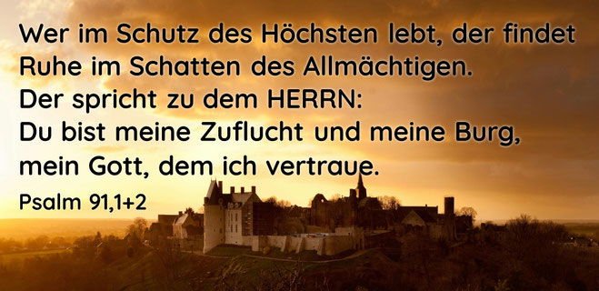 "Wer im Schutz des Höchsten lebt, der findet Ruhe im Schatten des Allmächtigen. Der spricht zu dem HERRN: Du bist meine Zuflucht und meine Burg, mein Gott, dem ich vertraue."